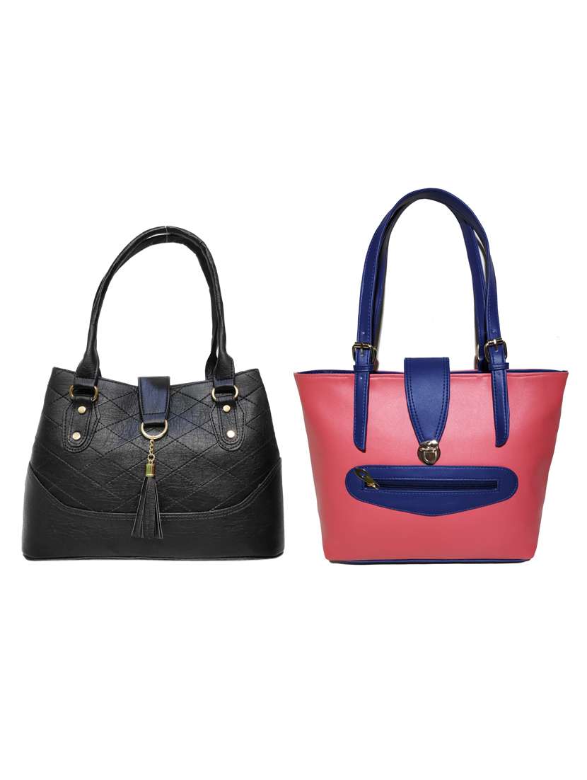 AZED Collections Women's PU Leather Handbag - Combo Pack of 2 -Black & Red (H006BK_H010RD)