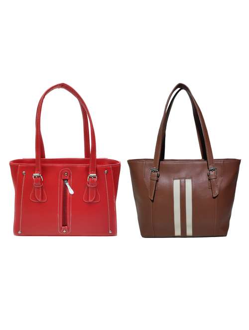AZED Collections Women's PU Leather Handbag - Combo Pack of 2 -Red & Brown (H007RD_H009BN)