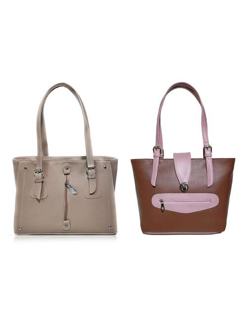 AZED Collections Women's PU Leather Handbag - Combo Pack of 2 -Beige & Brown (H007BG_H010BN)