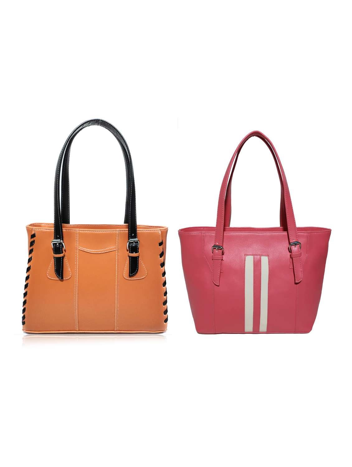 AZED Collections Women's PU Leather Handbag - Combo Pack of 2 -Tan & Red (H008TN_H009RD)