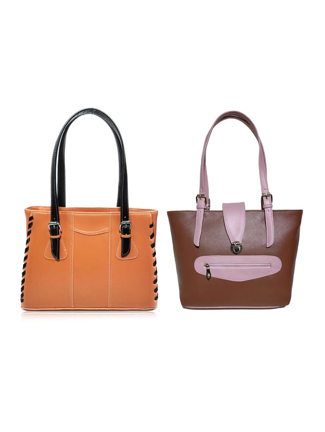 AZED Collections Women's PU Leather Handbag - Combo Pack of 2 -Tan & Brown (H008TN_H010BN)