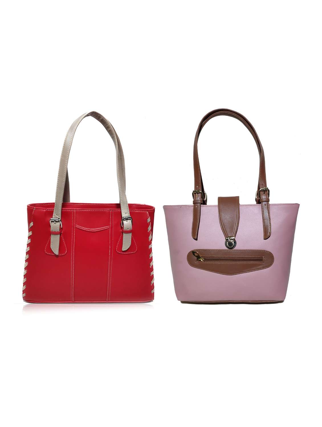 AZED Collections Women's PU Leather Handbag - Combo Pack of 2 -Red & Pink (H008RD_H010PK)