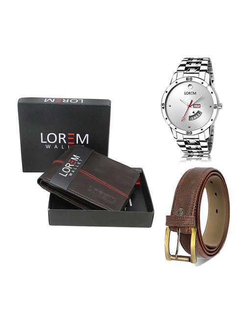 belt, wallet & watch leatherette gift combo - 19271601 - Very Small Image - 1