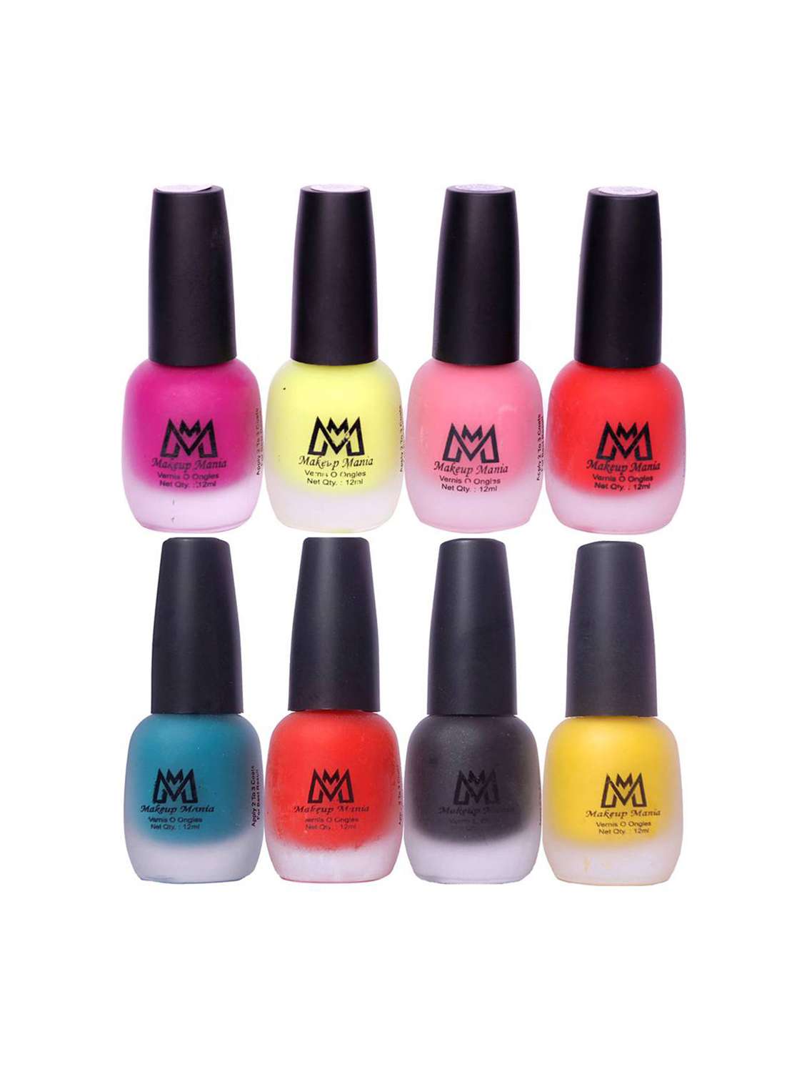 Makeup Mania nail polishes are highly pigmented setting shades which makes the nails to look beautiful and bright, each one as distinct and individual as the most talked about shade names in the industry. It will glam up your look in one go and no more salon visits are needed, a perfect gift for festive occasion or any other day to your loved ones, these are available in the latest trendy colors with velvet matte, glossy, glitter, shimmer, matte and frost shine finish. Makeup Mania nail polish has unique feature of long lasting stay with intense finish. Shake well before use. So get your professional manicure right at home. This combo consists of 8 nail polishes, these nail enamels are packed with authentic glass bottles, long lasting and chip resistant formula. The perfect flat brush helps give a smooth coat in one go. These enamels can be removed by any nail paint remover and it's as hassle free as it can be.