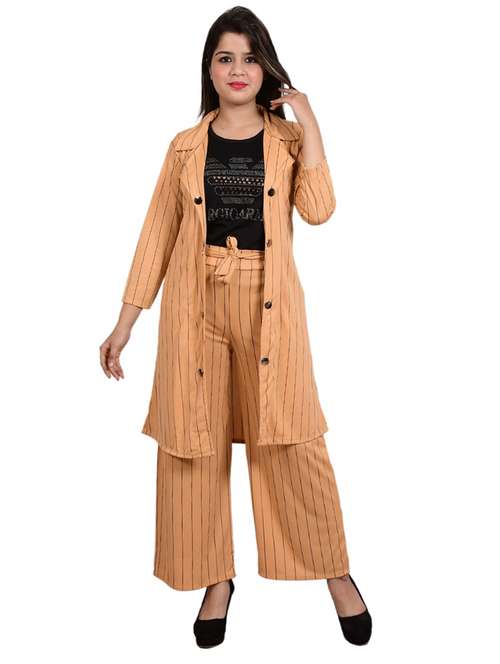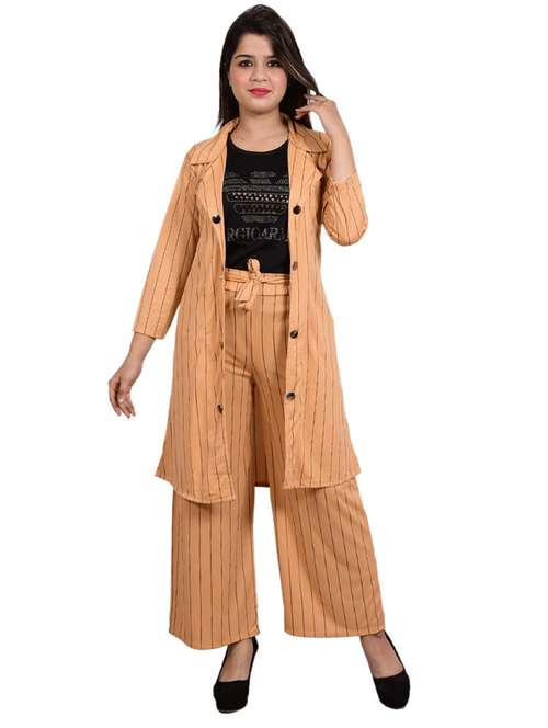 - » peach striped top and trouser with jacket co-ord set