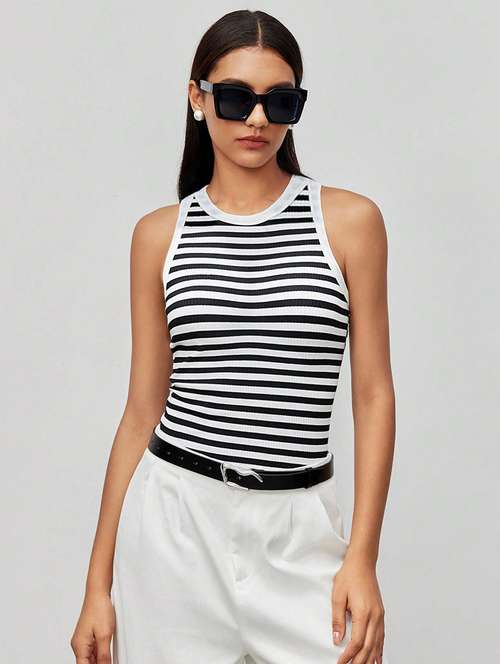 Upgrade your wardrobe with the Nalax Designs Black Striped Sleeveless Top, a perfect blend of style and comfort. Featuring a classic striped pattern in timeless black, this top offers a chic and modern look. Crafted from premium, breathable fabric, it ensures a soft and comfortable fit for all-day wear. The sleeveless design makes it ideal for layering or wearing solo during warmer days. Perfect for casual outings, office wear, or vacations, this versatile top pairs effortlessly with jeans, skirts, or shorts. Available in multiple sizes, it suits every fashion preference. Shop Nalax Designs for trendy and elegant wardrobe essentials!
