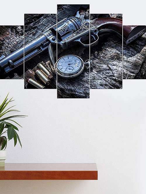 Digital Print 5 Panel Gun Print Wall Decor Wall Art Wooden Painting Wallpapers for Home, Office & Gift (30 x 17.5 Inches)