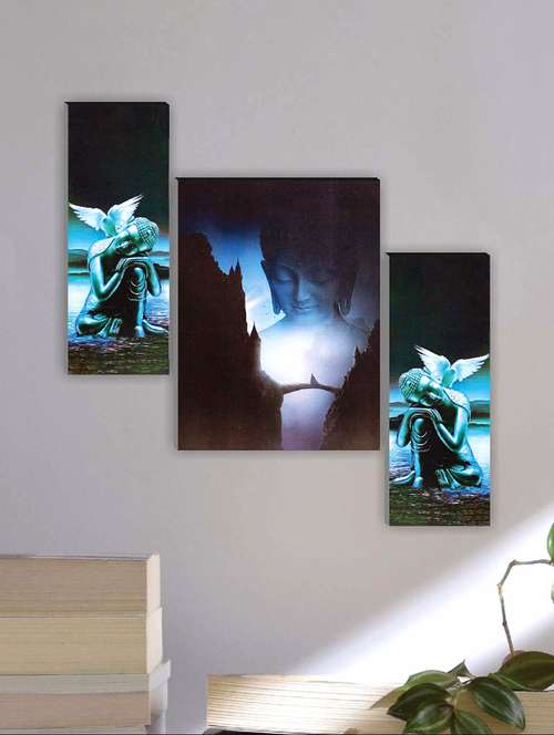rac set of 3 peaceful painting of buddha 12x18 mdf inch wall art painting