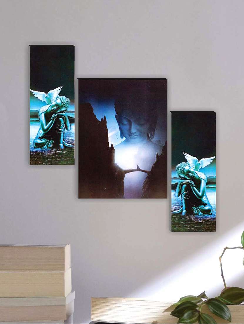 rac set of 3 peaceful painting of buddha 12x18 mdf inch wall art painting - 19772169 - Very Small Image - 1