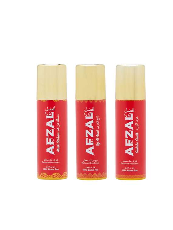 - » afzal non alcoholic gulabe oudh, musk dirham & taj al arab combo deodorants (pack of 3 x 50ml)