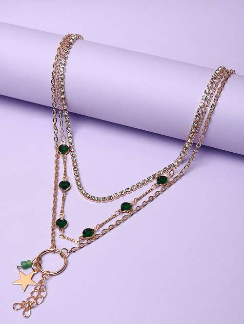 gold-plated stone-studded multi-layered necklace