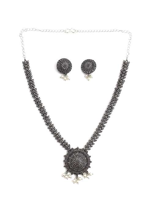 oxidised silver long necklace with earring - 18196390 -  Standard Image - 0 oxidised silver long necklace with earring - 18196390 -  Zoom Image - 0