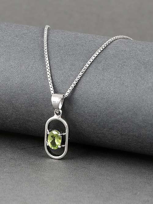 925 Sterling SIlver, Natural Peridot Gemstone, Designer Pendant & Chain