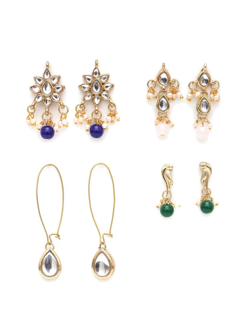 Karatcart Set of 4 Handcrafted Kundan Earrings Combo for Women (33010367)