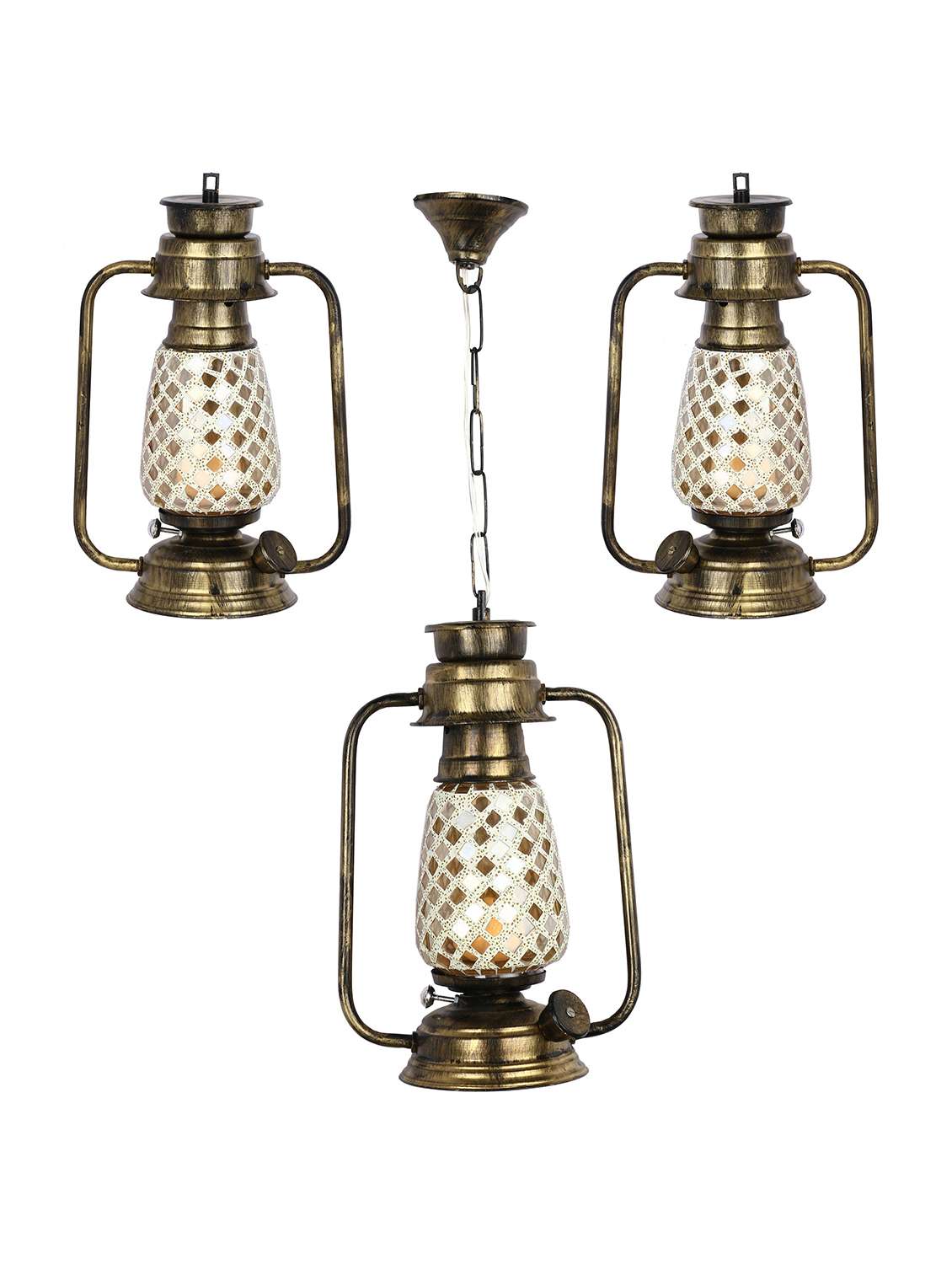 - » vintage kerosene lantern electricity hanging lamp light, led compatible, gold & clear, pack of 3 lamps