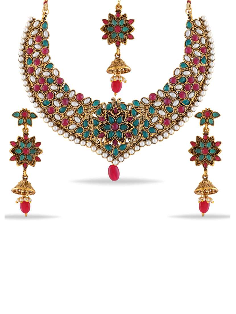 matushri art indian traditional necklace with earrings and maang tikka - 19668375 -  Standard Image - 1 matushri art indian traditional necklace with earrings and maang tikka - 19668375 -  Zoom Image - 1
