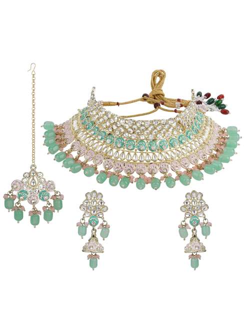 - » matushri art indian traditional necklace with earrings and maang tikka