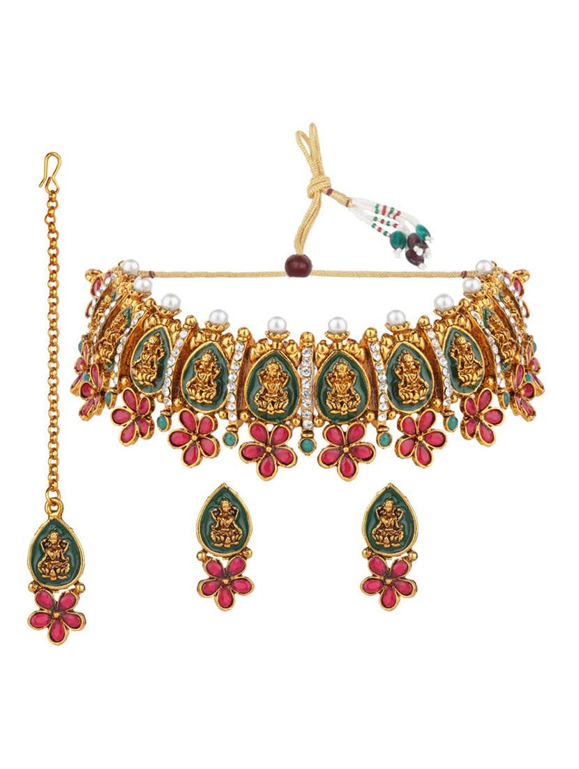 matushri art indian traditional necklace with earrings and maang tikka - 19668650 - Very Small Image - 1
