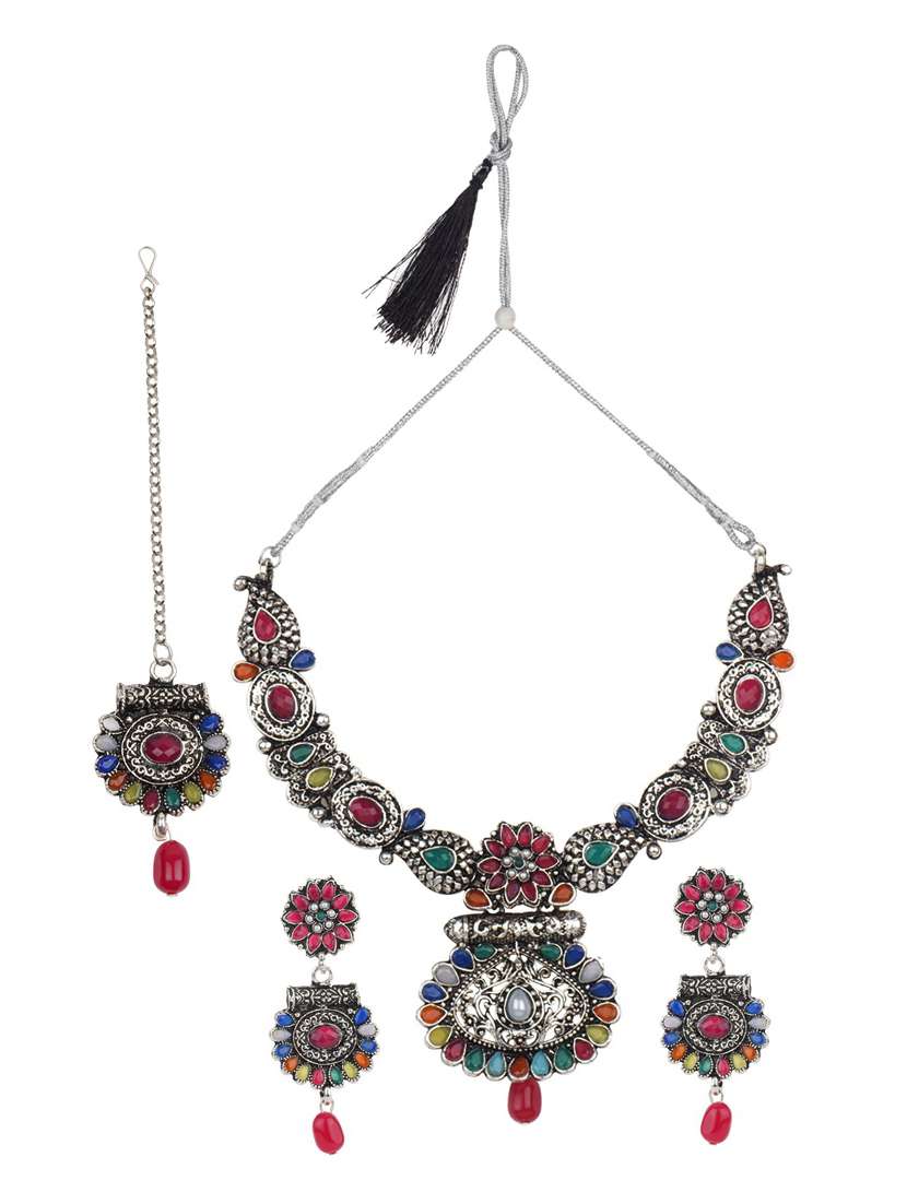 - » matushri art indian traditional necklace with earrings and maang tikka