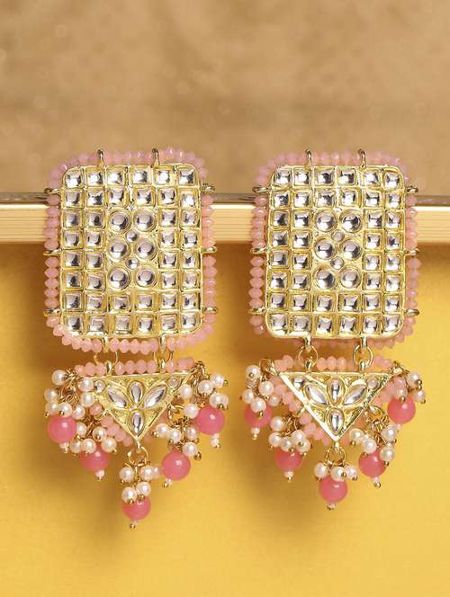 gold plated kundan drop earring - 19299179 - Very Small Image - 1