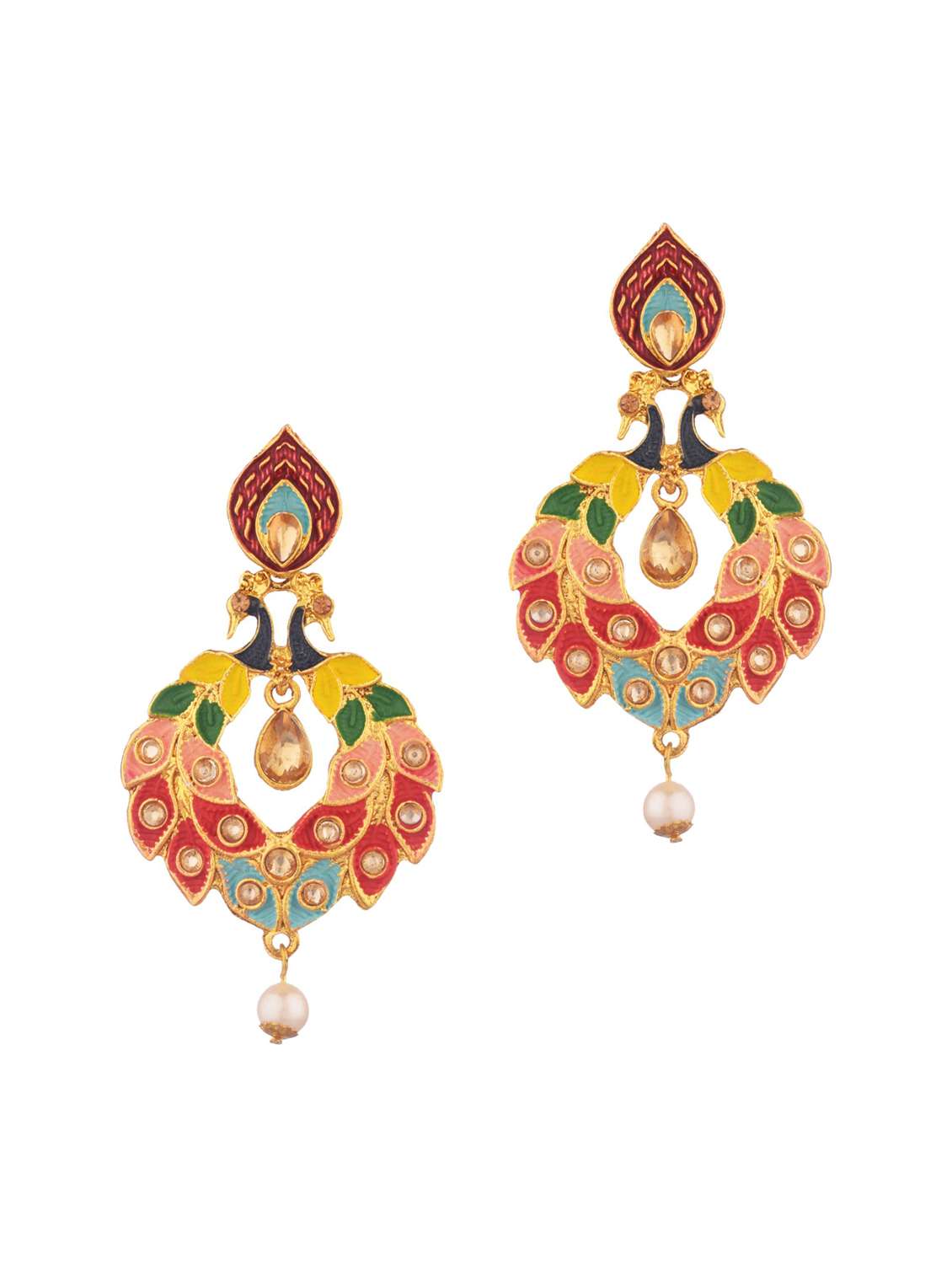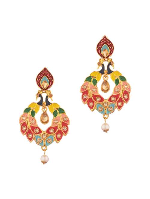 - » traditional peacock kundan drop dangle earrings set, multicolor