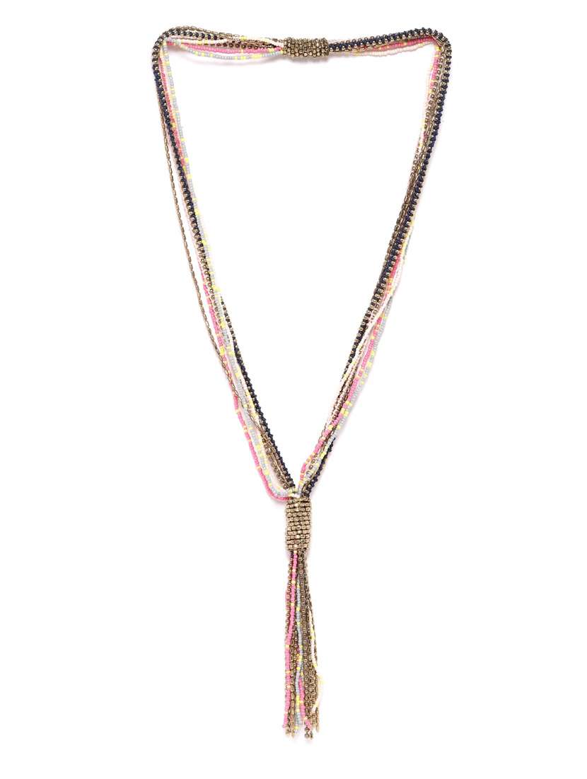 Multicoloured gold-plated artificial beaded multistranded tasselled necklace