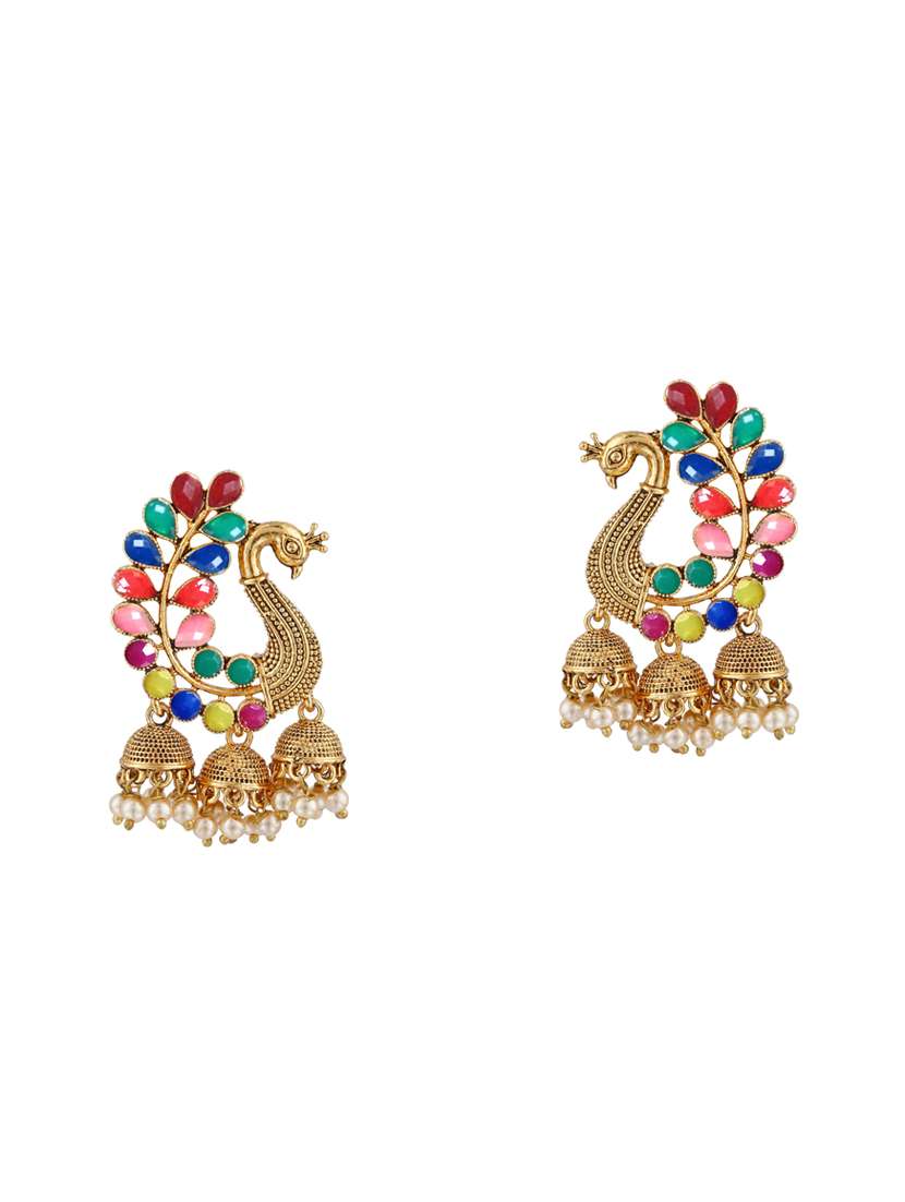 multi colored metal jhumka earring - 16472347 - Very Small Image - 1