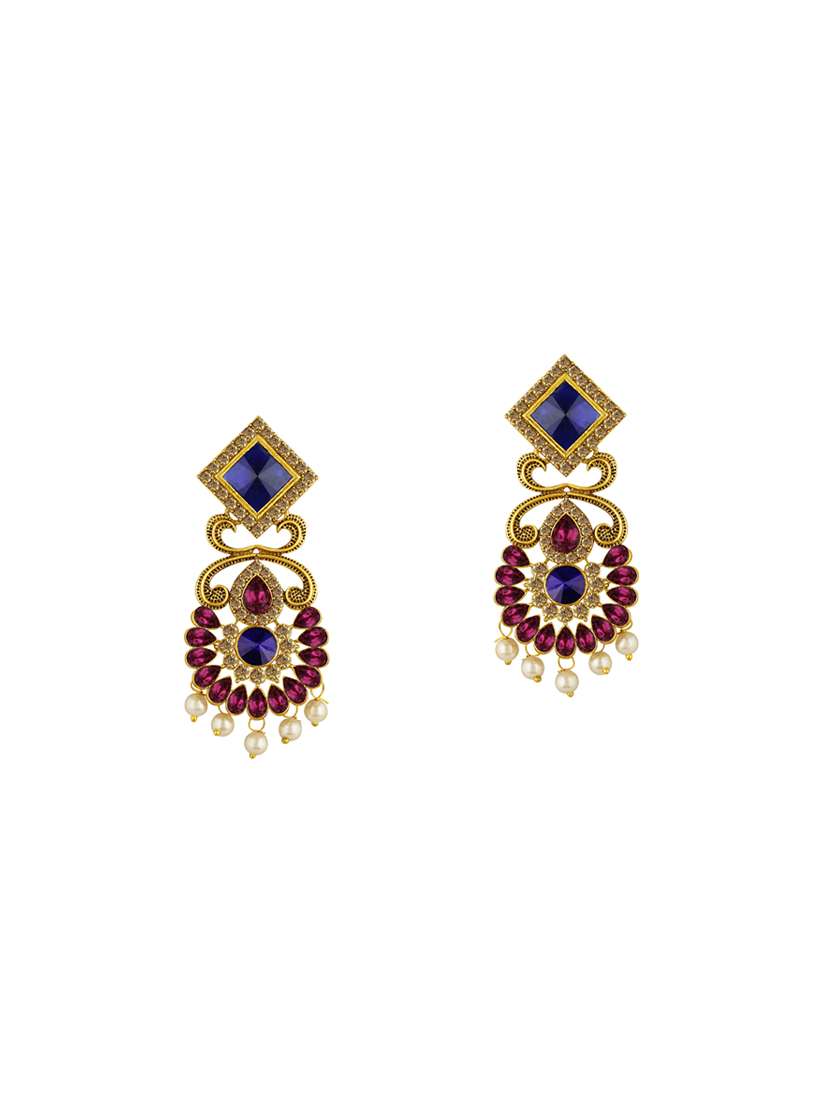 Spargz Gold Plated Antique Indian Style Bridal Blue & Purple AD Stone Chandelier Earrings For Wedding & Party AIER 1341