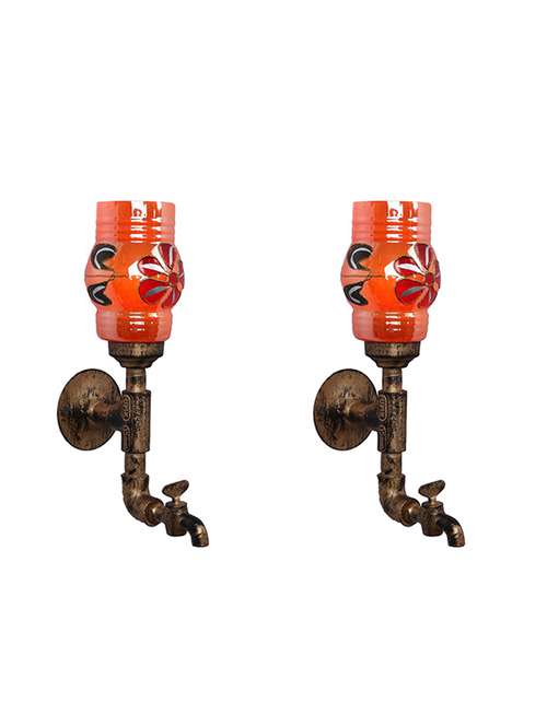 vintage tap wall fitting fixture light with colorful decorative glass shade, e27, metal, glass
