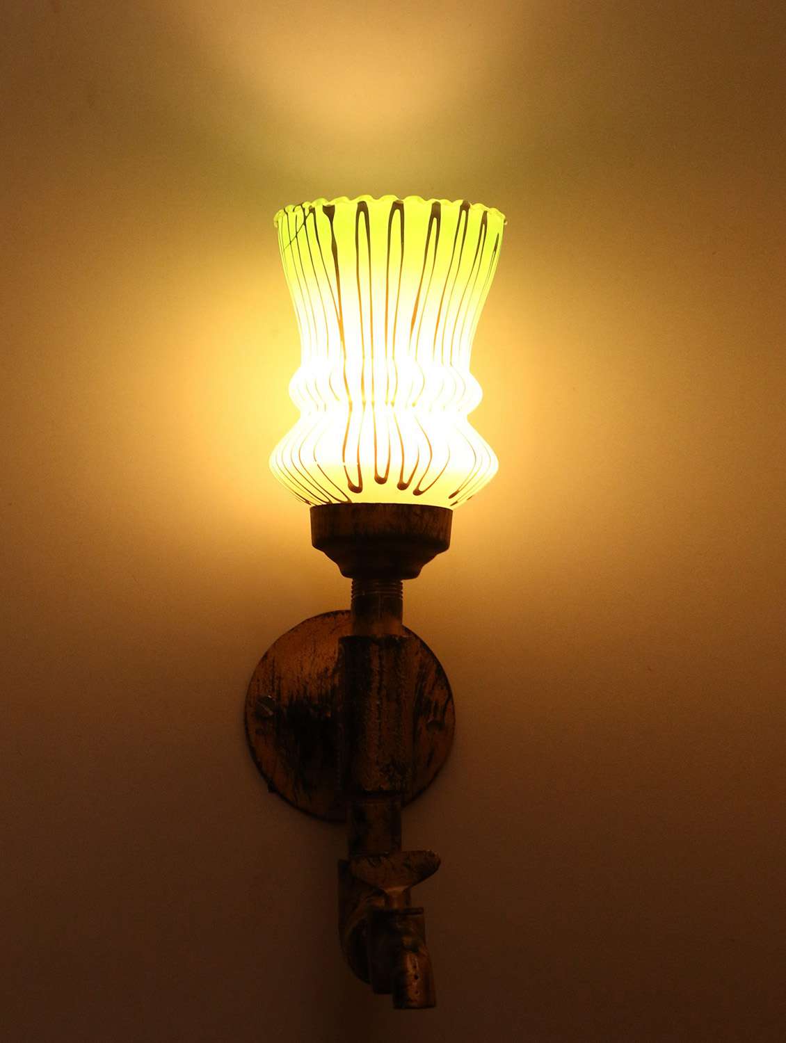 vintage tap wall fitting fixture light with colorful decorative glass shade, e27, metal, glass