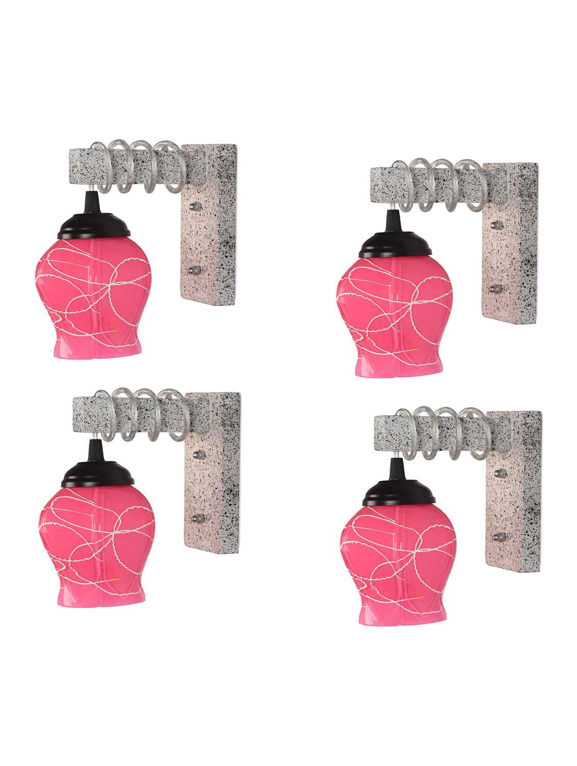 Designer Black White Wood Pendant Wall Light / Night Lamp Of Colorful Glass Shade (Set Of Four)-WA68