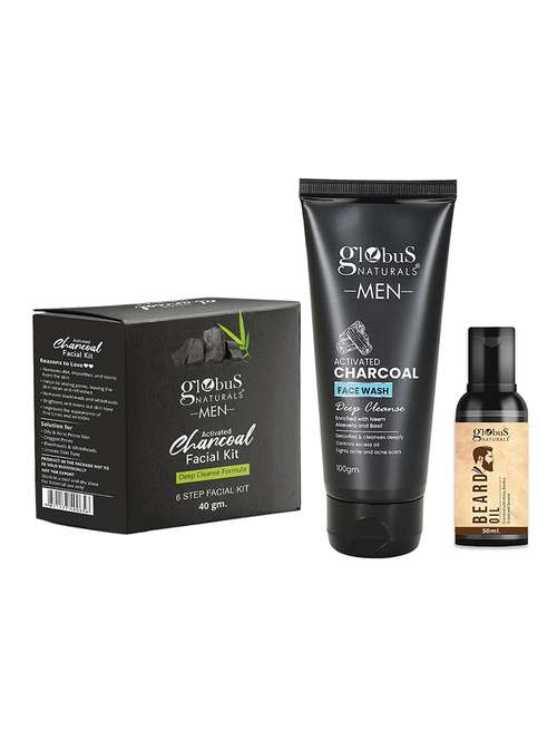- » pack of 3 globus naturals charcoal men face wash, facial kit & beard oil