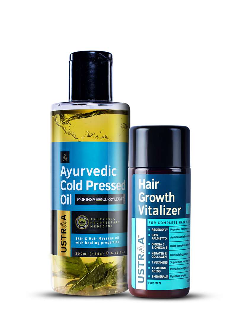 ustraa ayurvedic cold pressed oil - 200ml & hair growth vitalizer - 100ml