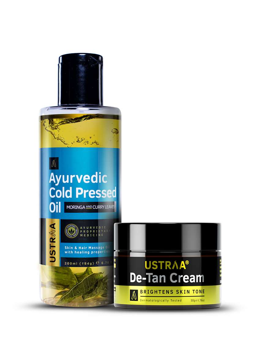 ustraa ayurvedic cold pressed oil - 200ml & de tan face cream - 50g