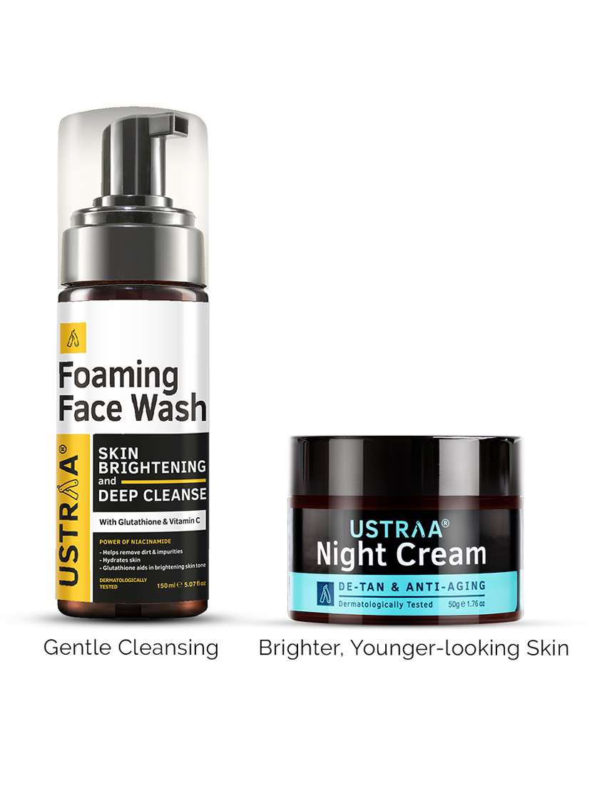 Foaming Face Wash For Skin Brightening 150 Ml & Night Cream De Tan And Anti Aging 50g