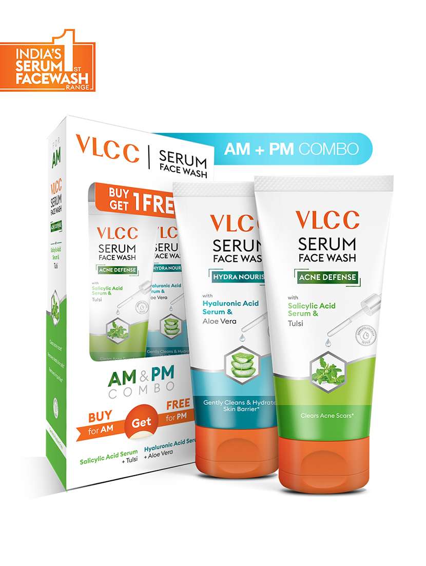 vlcc salicylic acid & tulsi serum facewash for am & aloe vera serum facewash for pm ( 150ml each ) - 20767190 - Very Small Image - 1