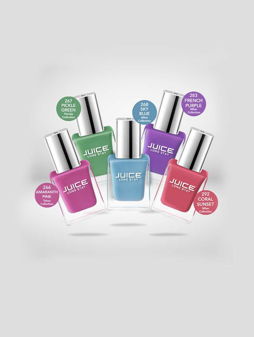 - » juice nail polish combo 15 - pickle green, sky blue, french purple, coral sunset, amaranth pink