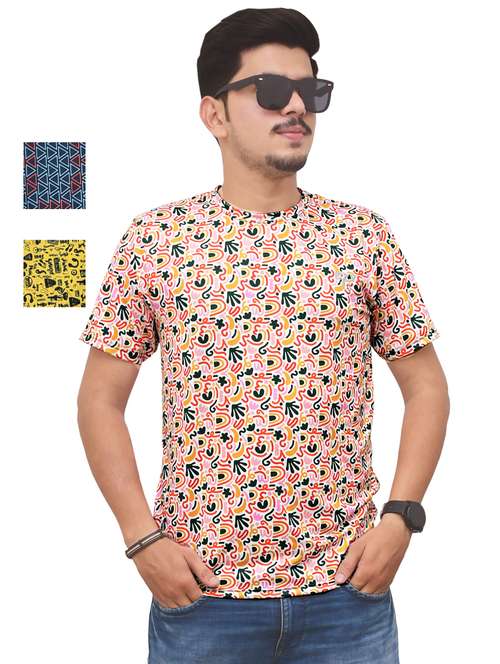 round neck printed t-shirt combo - 19958198 - Very Small Image - 1