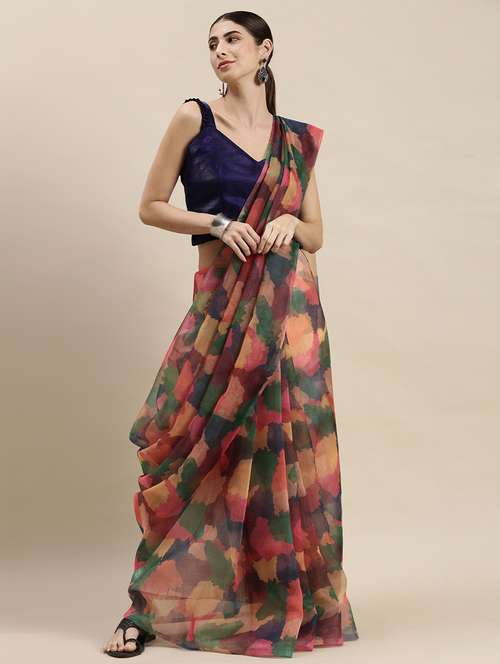 women's printed multi colored saree with blouse - 17949291 - Very Small Image - 1
