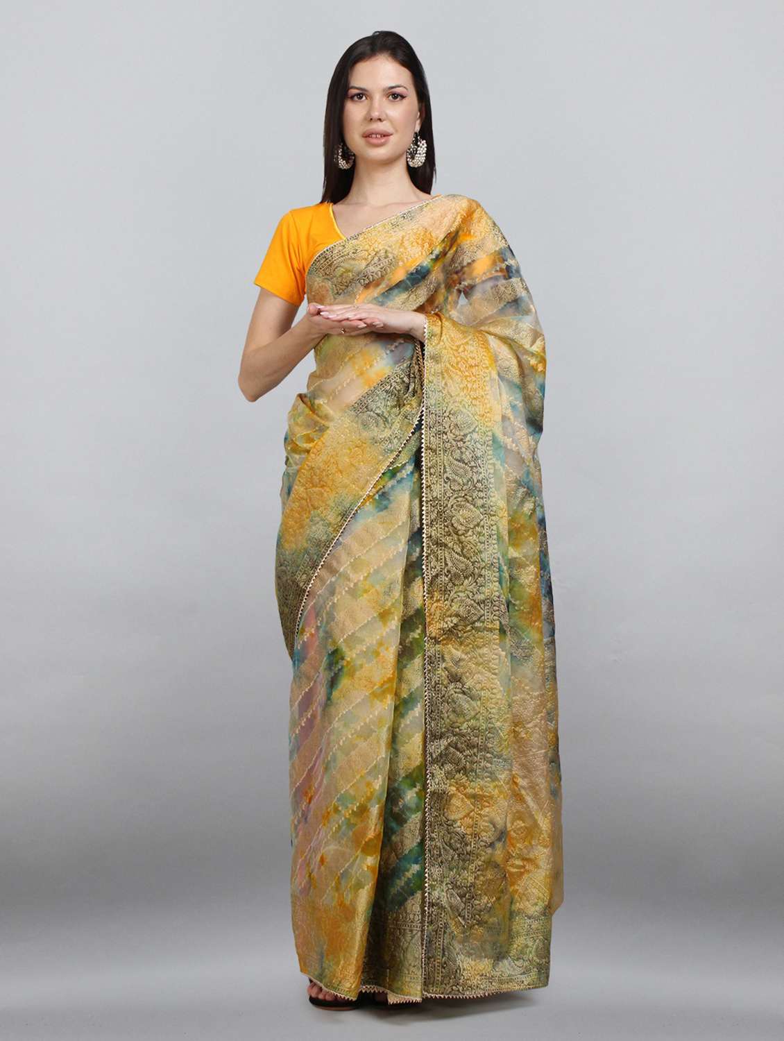 women's bordered royal blue colored saree with blouse