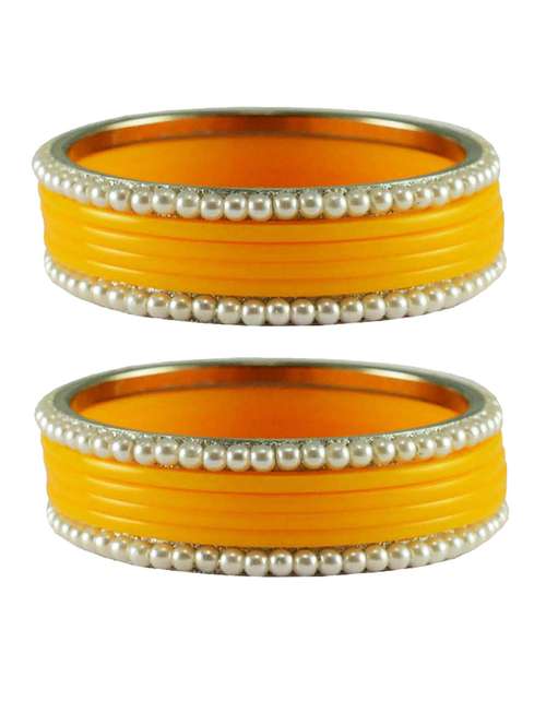 - » yellow moti acrylic-brass bangle with extra large size