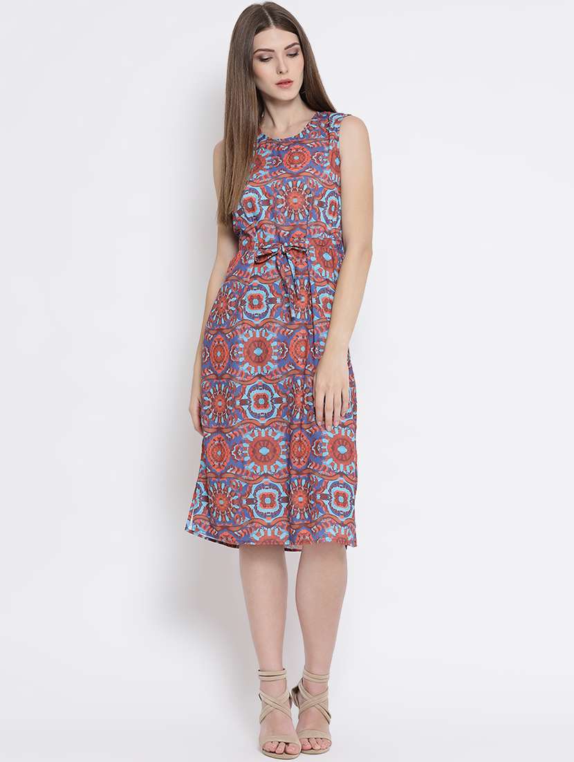 - Dress up in a soothing pattern and don this dress made of polyester material.