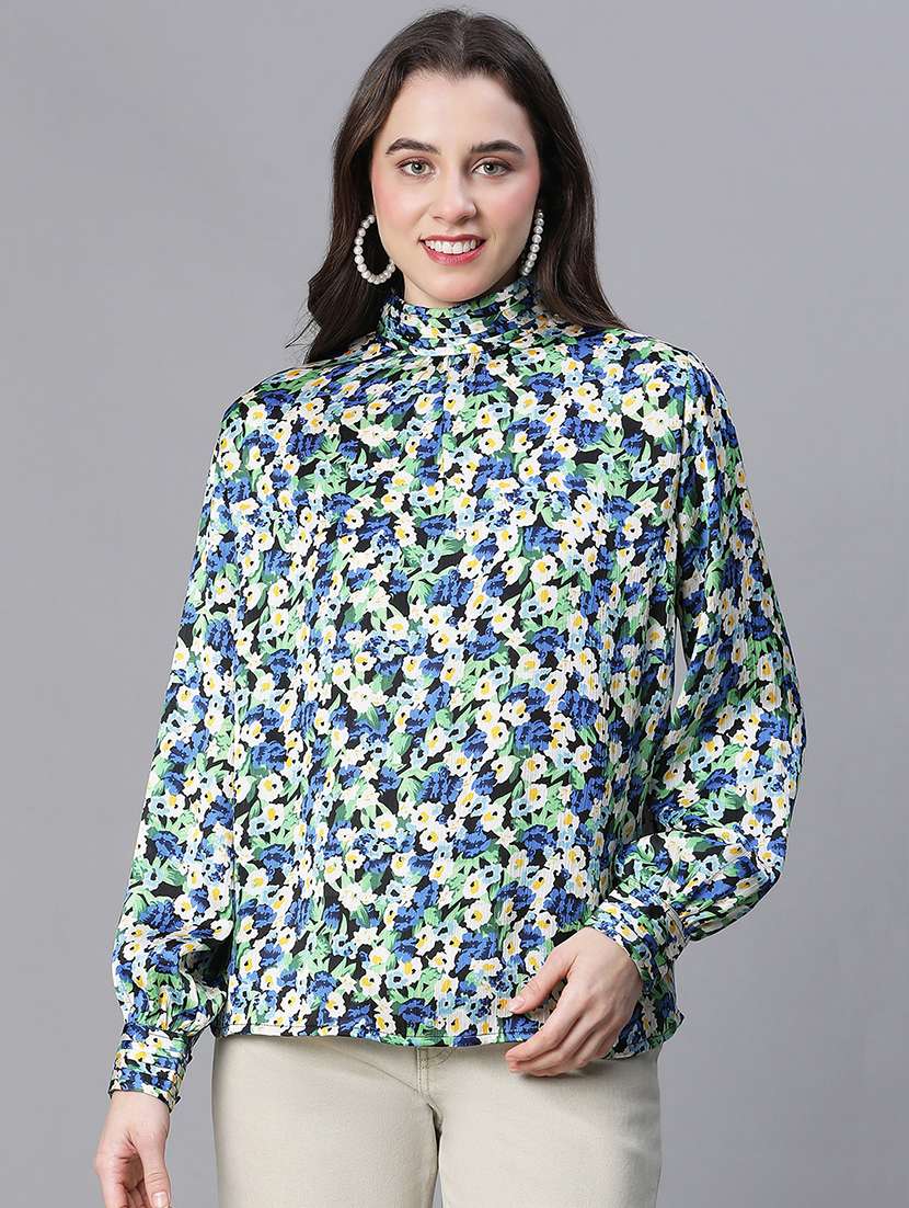 Multicolor floral print long sleeve women top is crafted polyester, it's like your personal fashion statement of comfort and elegance. With its round neck and long sleeves, this top is your go-to for any event, be it a laid-back outing or a night of glamour, this top goes with all day and reasons. Pair it with a right bottomwear and unleash your inner trendsetter, radiate confidence, and make an unforgettable statement with this chic and snug piece.