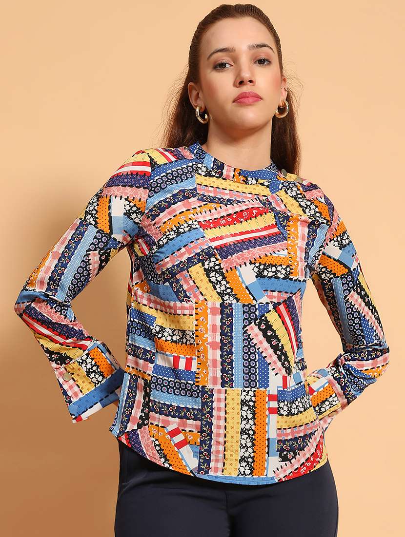 - » women multi color printed long sleeve regular top