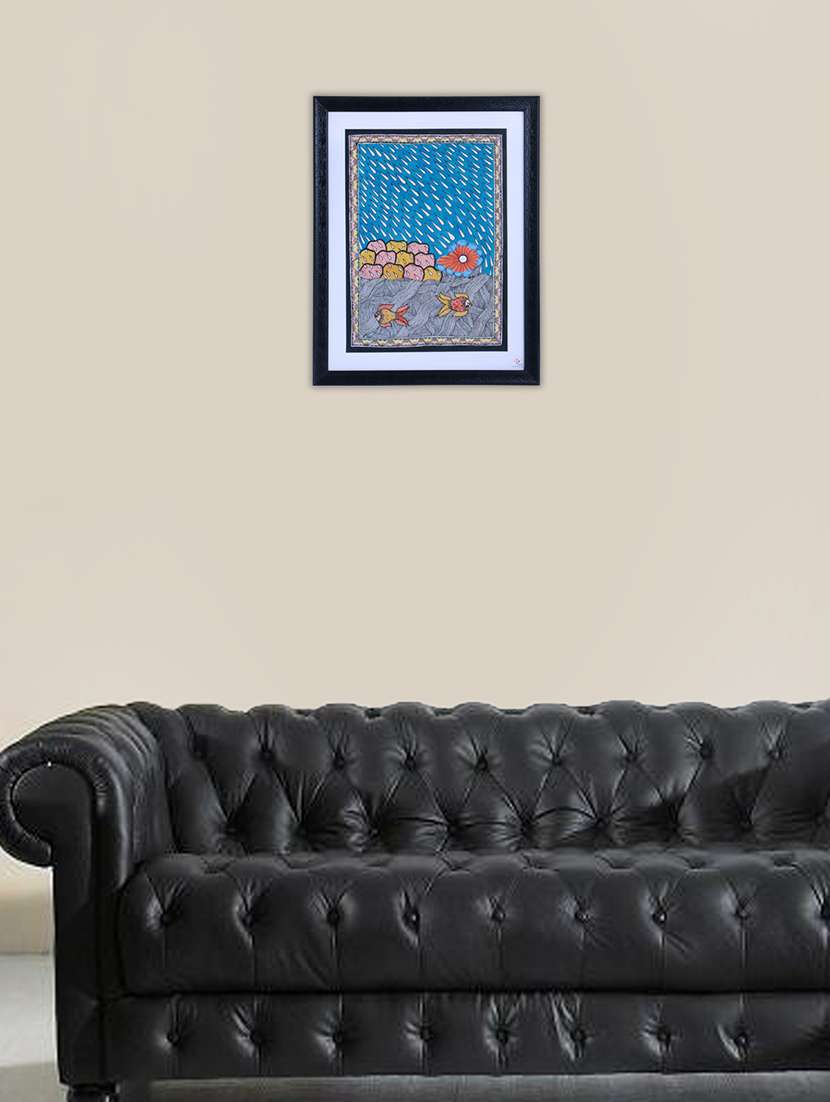 madhubani mithila painting of evolution of life with fish and peacock