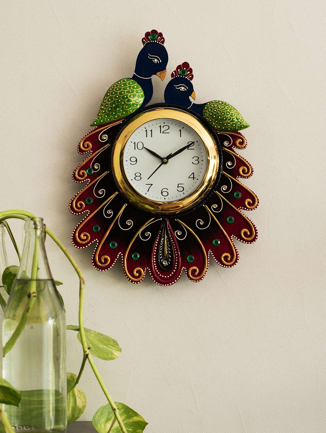 - » handcrafted papier-mache 2 peococks decorative wall clock