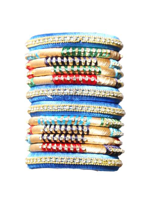 - » handmade silk thread blue kade & multicolor bangles set of 12