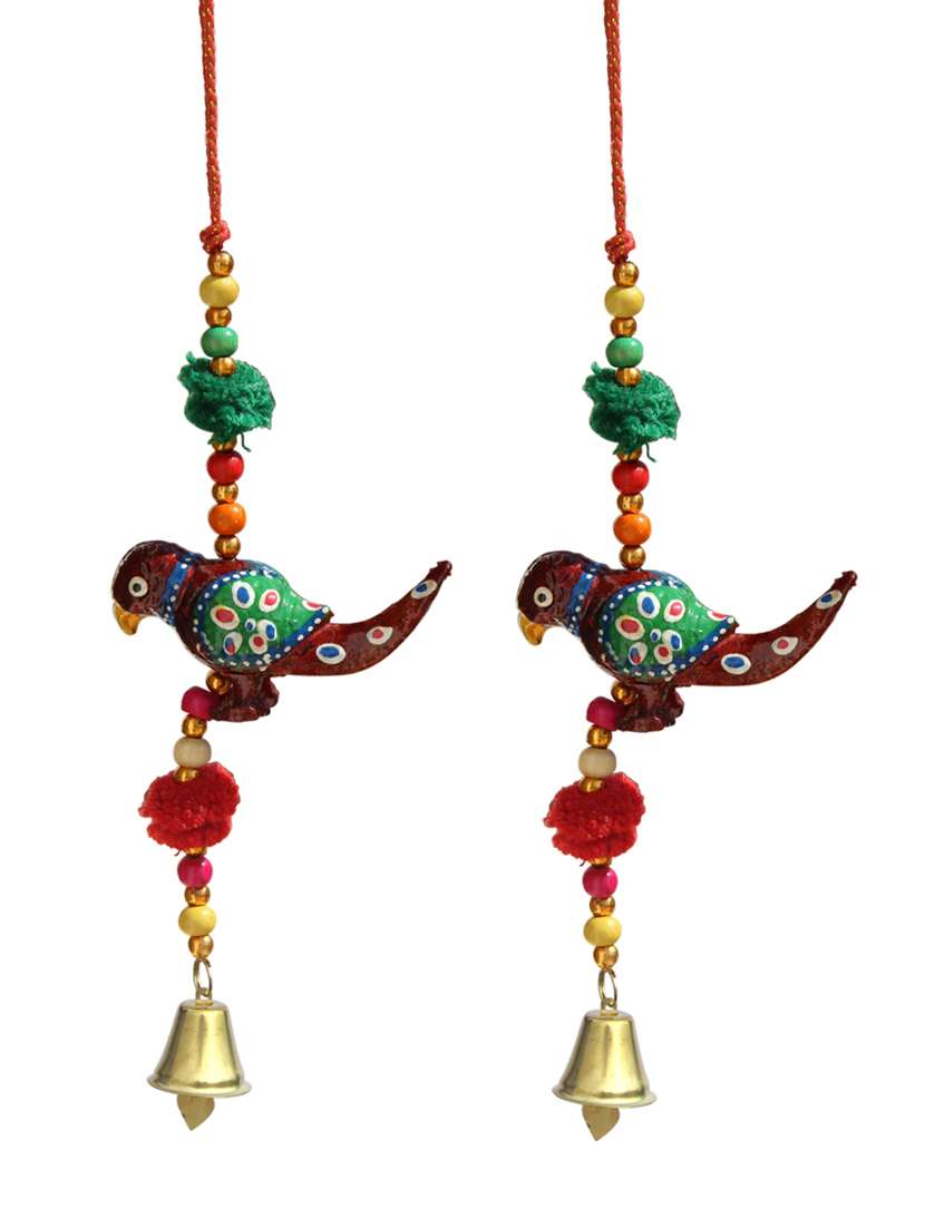 - » door hanging maroon parrot with wooden beads pumpum and metal bell set of 2 by handicrafts paradise