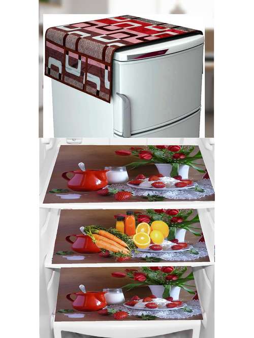 Refrigerator Cover (Width: 1 cm, Multicolor, Red)