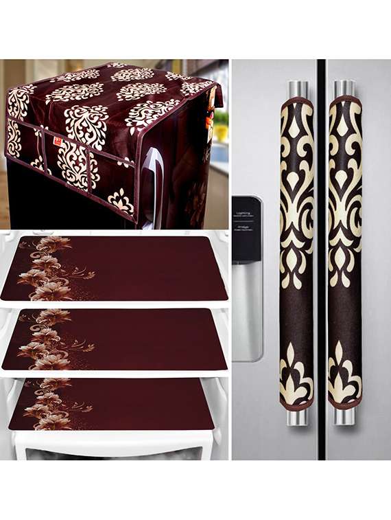 Refrigerator Cover (Width: 64 cm, Brown, White)